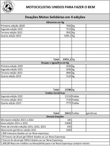 Prestação de contas das doações da 3ª Edição do Motos Solidárias 2022